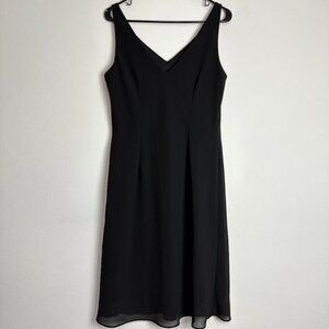 VTG Sheri Martin New York Black V-Neck Cocktail Formal Dress Size 12 Sheer Hem