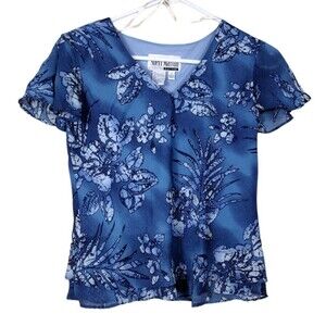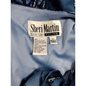 VTG Sheri Matin New York Petites 4P Floral 2 PC Dress Blue Overlay Sheer Padded