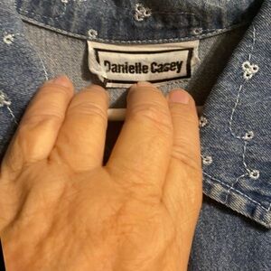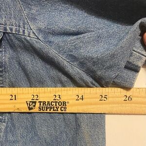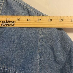 VTG Shirt Waist Embroidery Prairie Dress Blue Denim Cottage Midi 22/24 Plus Size