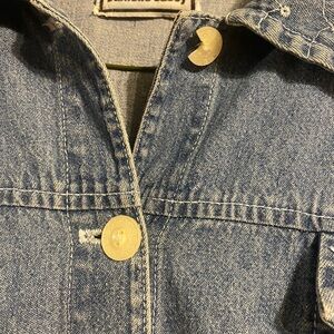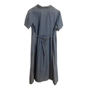 VTG Denim Grannycore Midi Shirt-dress Plus Size 22/24 or 3X Boho blue denim Embroidered collar & lapel Gathered waist Attached side string belt Faux breast pockets Western Prairie