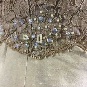 VTG Siegelstoff Haute Couture Modele Dress Beige Lace Long Pencil Crop Jacket