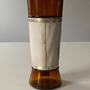 VTG Siesta Ware Tumbler Amber Glass w Walnut Wood Veneer Wrap Jacket