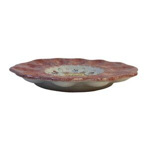 Elevate your farmhouse decor with this charming vintage hand-painted rooster plate. Its 11" scalloped edge and vibrant colors make it an eye-catching piece for any collection.