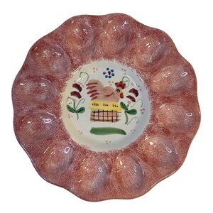 VTG Sigma Taste Setter Hand-Painted Ceramic Pink Rooster Egg Serving Plate 11"