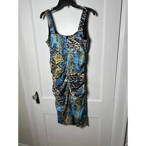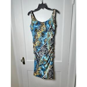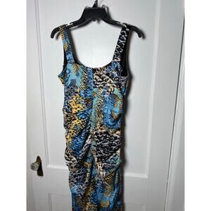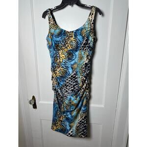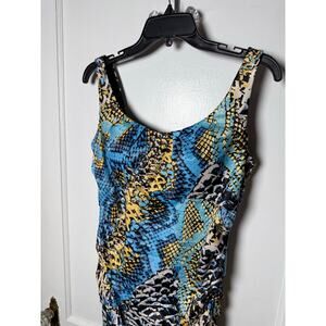 VTG Signature by Sangria Y2K Ruched Snake Satin Teal Blue Sleeveless Dress 10