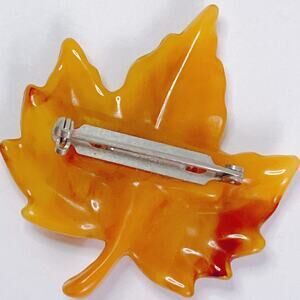 A single rhinestone glints like a drop of sunlight on this caramel-hued lucite leaf, echoing crisp walks and the scent of autumn air. Its glossy amber marbling captures the warmth of fall leaves and the comfort of a caramel apple glow pinned close to the heart.