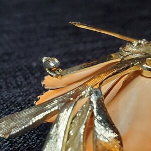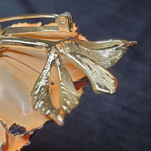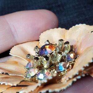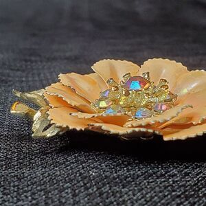 VTG Signed CORO Trembler Brooch AB Rhinestones Gold Tone Enamel Peach Poppy 3"