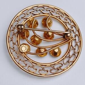 VTG Signed Carla 12K GF Multicolor Rhinestone Circle Brooch 1960s Spray Pin