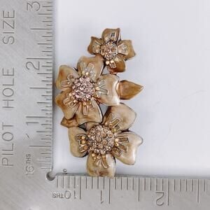 A sculptural floral brooch with warm neutral tones and a softly weathered metallic finish, perfect for understated vintage layering or modern boho looks.