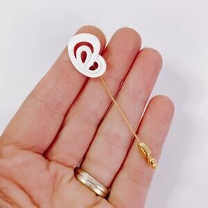 This mid-century Trifari stick pin brings together white enamel and gold tone metal in a sculptural swirl that captures the clean geometry of 1960s modernist design. Bearing the Crown Trifari hallmark, it reflects the brand’s mid-century craftsmanship and collectible legacy.