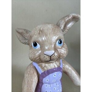 VTG Signed DAG 92 Ceramic Hand Painted Easter Bunny w/a Purple Apron Rabbit‎ 8”