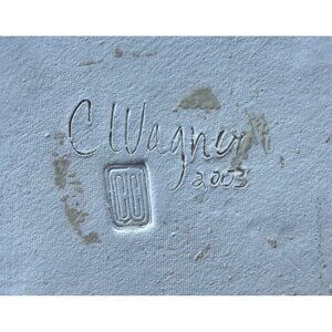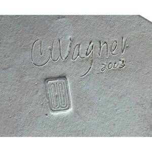 This set of 10" artisan ceramic plates from 2003 showcases a unique abstract brushstroke design in earthy brown tones. Signed by C. Wagner, ideal for adding a fresh touch to your table setting, these plates are perfect for serving appetizers, sushi or desserts. Each piece is handcrafted, ensuring a one-of-a-kind addition to your collection.