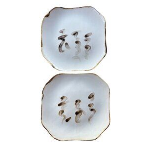 VTG Signed Handcrafted Ceramic Plates Abstract Earth Brushstroke Design Set Of 2