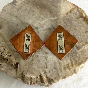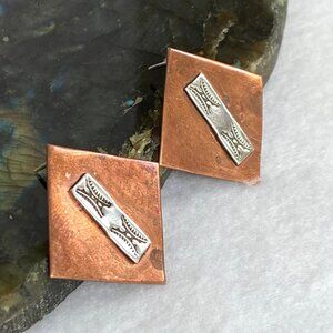 VTG Signed JT Southwest Copper Sterling Silver 925 Stamped Pierced Earrings