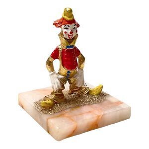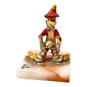 VTG Signed JuDi Originals CIRCUS CLOWN FIGURINE 24k Gold on Marble Onyx Base 3"