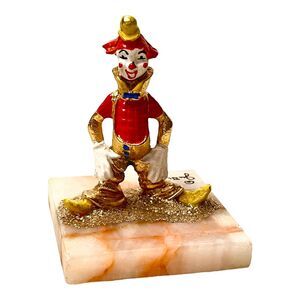 This JuDi Originals Clown Is Dripping In 24K Gold Plate Detailing On Square Onxy Marble Base.