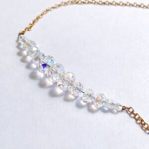 Materials: Gold tone chain; aurora borealis faceted glass crystals