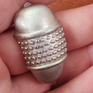 VTG Signed LIZ CLAIBORNE Large BRUTALIST MATTE SILVER DOME DROP EARRINGS post