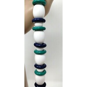 * The necklace features a mix of white, blue, and green beaded strands in a unique and playful design