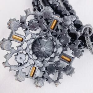 Materials: Faceted black glass beads; black-painted base metal; acrylic black rhinestones