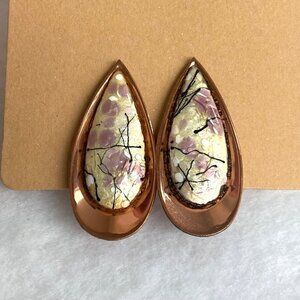 VTG Signed Renoir Matisse Copper Modernist Enamel Teardrop Clip On Earrings
