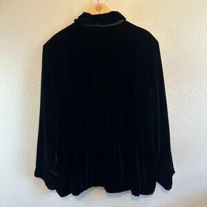 VTG Silhouettes Blazer 24w Black Velvet Feel Open Jacket Pockets Silk Blend Goth
