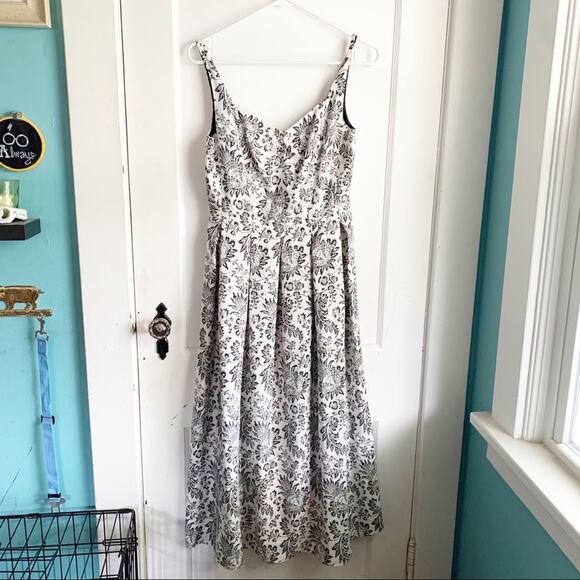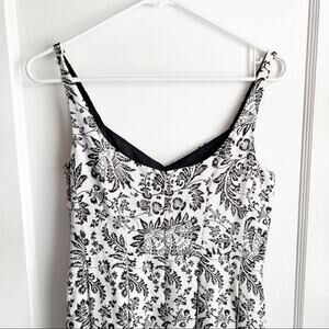 Vintage Esperanto Midi Dress 100% Pure Silk A-Line Skirt. Sleeveless. Pleated Skirt. V-neck with slightly gathered bust-line. Skinny straps. Lined. Size 6 {Six}. Floral, ornate print. Some small spots under left bust on dress. I didn’t notice them at first because they blend in pretty well with the all-over print (see last pic). Overall, good, vintage, preowned condition. Dry Clean. Flattering seaming. 90’s Y2K. 1950’s style.