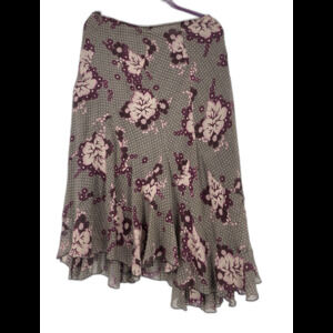 Amazing vintage 100% Silk Y2K asymmetrical ruffle floral midi skirt