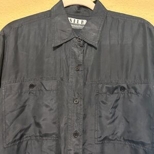 VTG Silk Collection Button Up Shirt Womens Medium Black 100% Silk Career Minimal