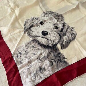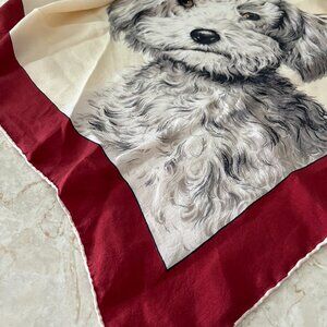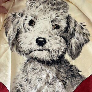 VTG Silk Dog Portrait Scarf Cream Black and Red Trim