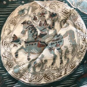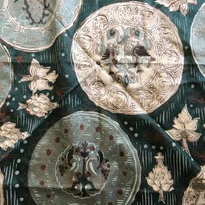 VTG Silk Hand Rolled Scarf European High Middle Ages Royalty Hearts 33X33”