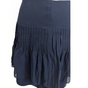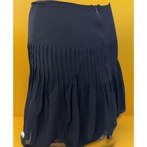 VTG Silk Pleated Mini Skirt 6 Navy Blue Ruffles Luxury Designer RARE Made In USA