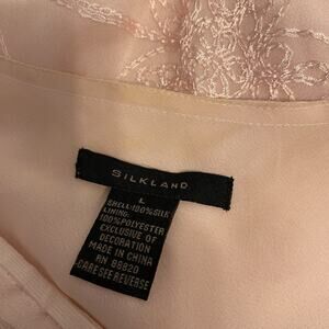 The VTG Silkland Pink Floral Embroidered Bell Sleeve Y2K Fairy Angel Mesh Blouse in size L is a vintage-inspired top perfect for various occasions like travel, parties, casual outings, and workwear. Made of lightweight chiffon fabric with embroidered accents, this blouse features a V-neckline, 3/4 bell sleeves, and a pullover closure. The pink floral pattern adds a charming touch, while the sheer material and fairy character make it a whimsical and feminine choice for all seasons. Ideal for those who appreciate a blend of elements such as ruffles, beaded accents, and velvet burnout for a unique and dreamy look.