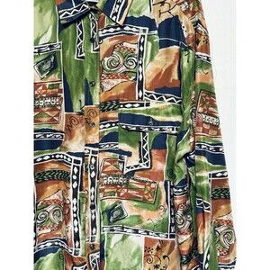VTG Silk's Brand 100% Silk Long Sleeve Blouse Geometric Design Earth Tones 1X