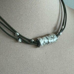 VTG Silpada Green LEATHER and sterling silver Necklace