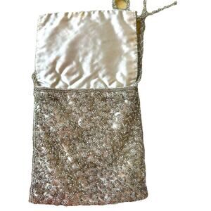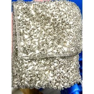 VTG Silver Beaded Tiny Purse Formal Bag Prom Dance Formal Wedding Guest 40s 50s