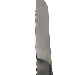 The Bridalake cake knife features a silver-plated handle with intricate detailing and a serrated stainless steel blade. A refined choice for professional or celebratory settings. 8820