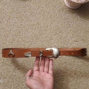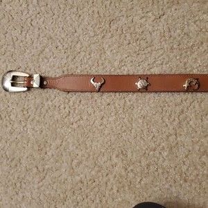 VTG Silver Creek Collection Brown Tan Animal Detail Leather Belt