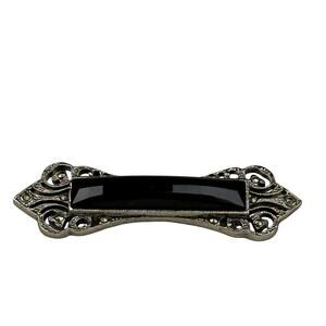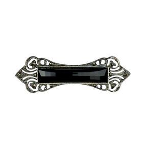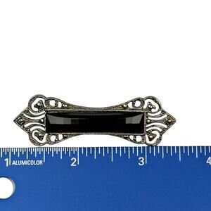 VTG Silver Marcasite & Black Faceted Simulated Onyx Bar Brooch Pin 2"