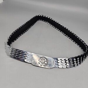 VTG Silver Metal Serpentine Fish Scale Stretch Fashion Belt Retro 30-40"
