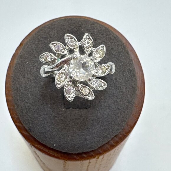 VTG Silver Plated Cubic Zirconia Flower Shape Cocktail Ring Size 6
