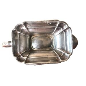 VTG Silver Plated Fluted Gravy Bowl Square Pedestal Base Ornate Scroll Handle