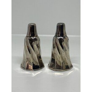 VTG Silver Plated Salt & Pepper Shakers Set 3.75" Swirl Decor MCM Hexagonal Base