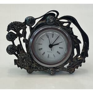 VTG Silver Scenes Miniature Clock & Picture Frame Flower Dandelion Desk Shelf