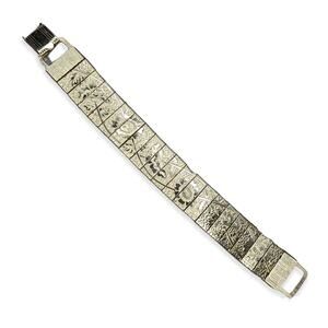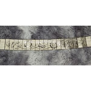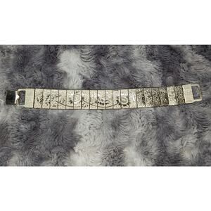 VTG Silver Tone Etched Floral Design Fold Over Linked Panel Clasp Bracelet