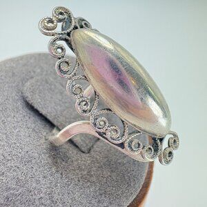VTG Silver Tone Marquise Scroll Border Statement Ring