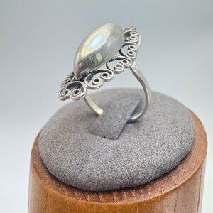 VTG Silver Tone Marquise Scroll Border Statement Ring Size 6