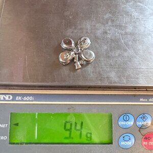 VTG Silver Tone White Crystal Four Leaf Clover Brooch Size 1.25" Length
