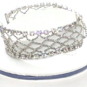 VTG Silver-tone Crystal Rhinestone Metal Mesh 6" Bracelet Lobster Clasp