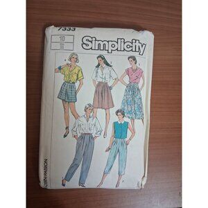 VTG Simplicity UNCUT Sewing Pattern 7333 Pants, Skirts Size 10 1986 80s Y2K